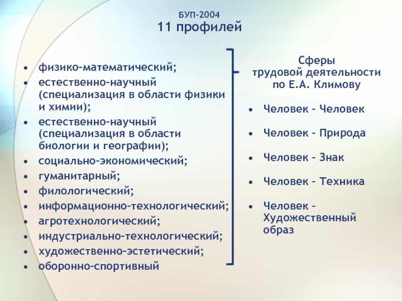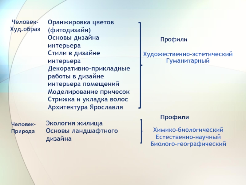 профориентационная деятельность учащихся в соответствии с индивидуальными психофизиологическими особенностями и познавательными интересами;