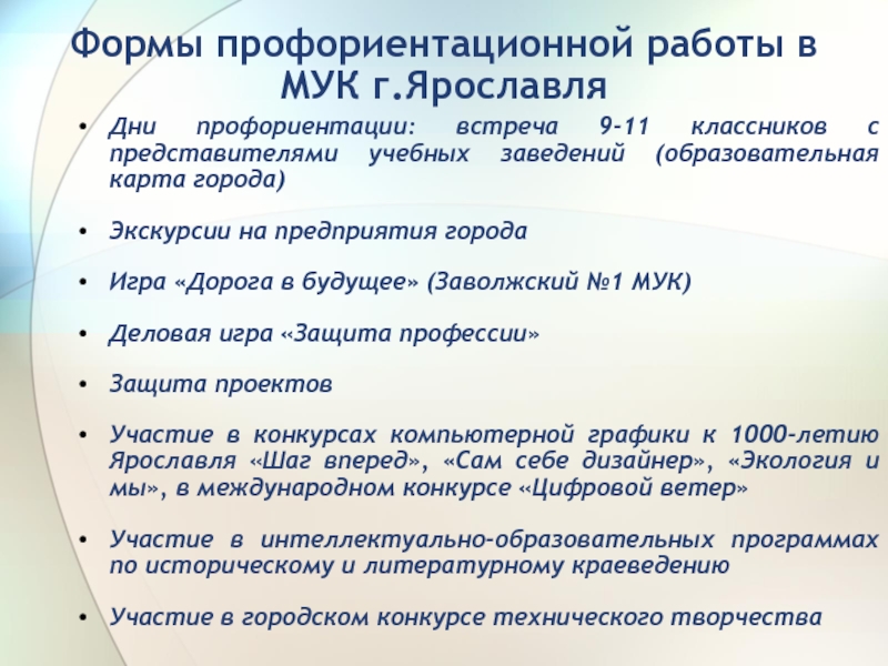 обширная медиатека из мультимедиаматериалов по всем направлениям профориентационной работы;