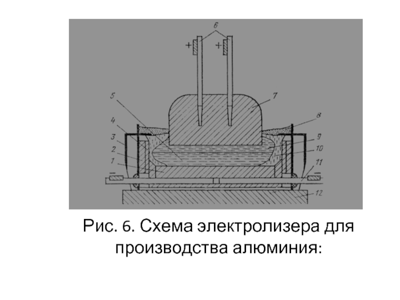Рис. 6. Схема электролизера для производства алюминия: