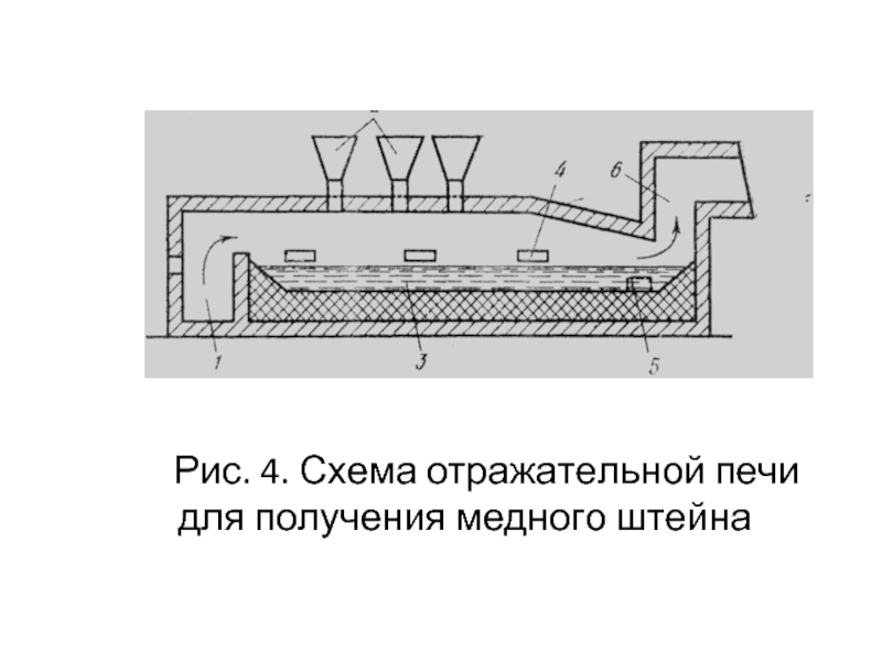 Рис. 4. Схема отражательной печи для получения медного штейна