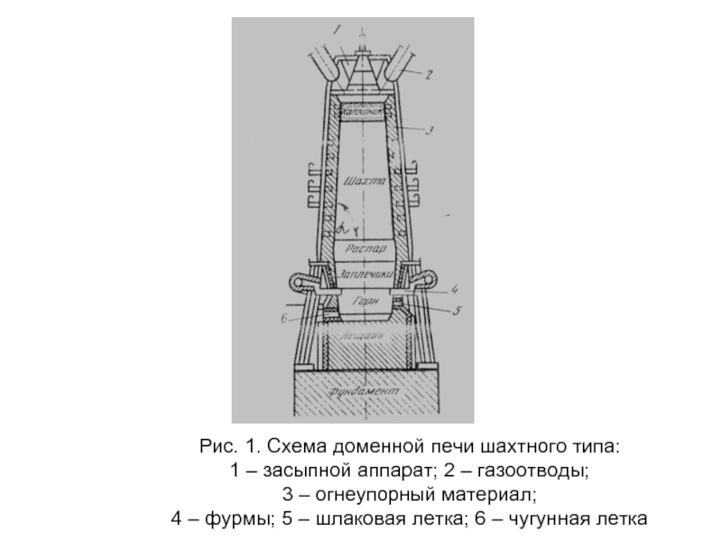 Рис. 1. Схема доменной печи шахтного типа: