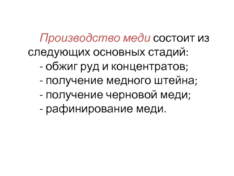 Слайд 16Производство меди состоит из следующих основных стадий:
