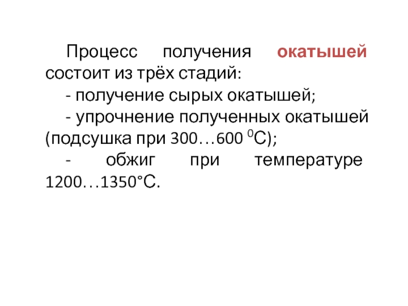 Слайд 8Процесс получения окатышей состоит из трёх стадий: