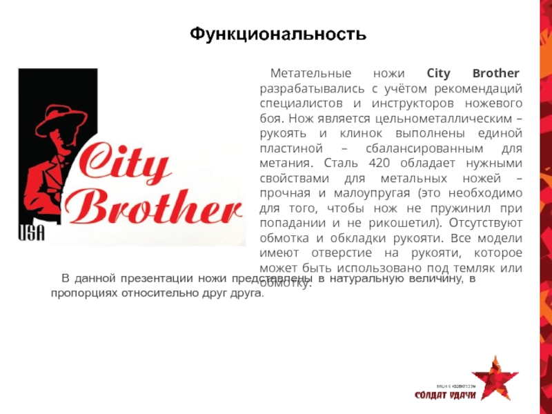 В данной презентации ножи представлены в натуральную величину, в пропорциях относительно друг друга.