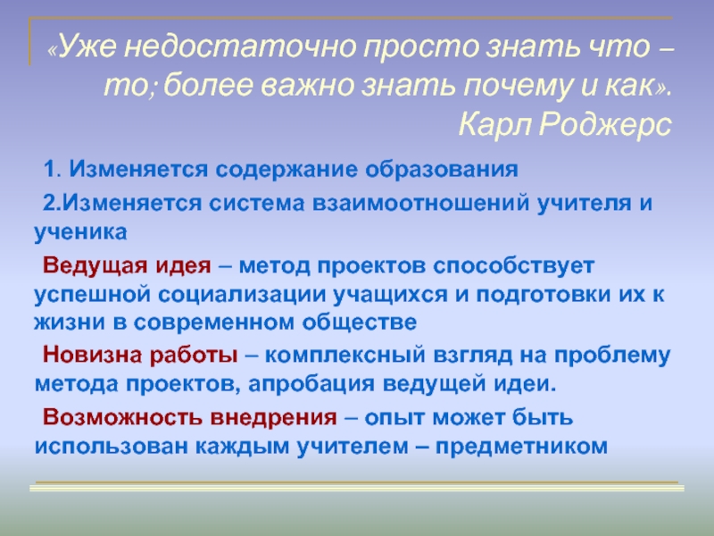 Слайд 2«Уже недостаточно просто знать что – то; более важно знать почему