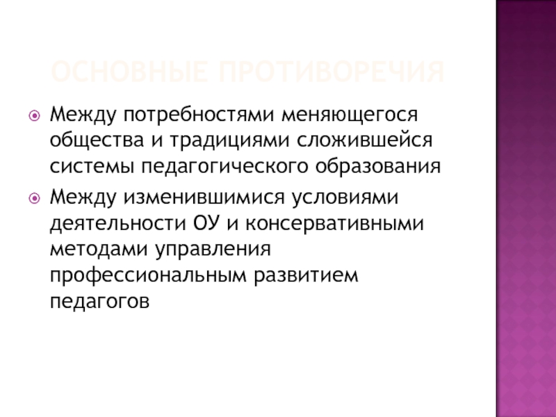 Слайд 4ОСНОВНЫЕ ПРОТИВОРЕЧИЯ