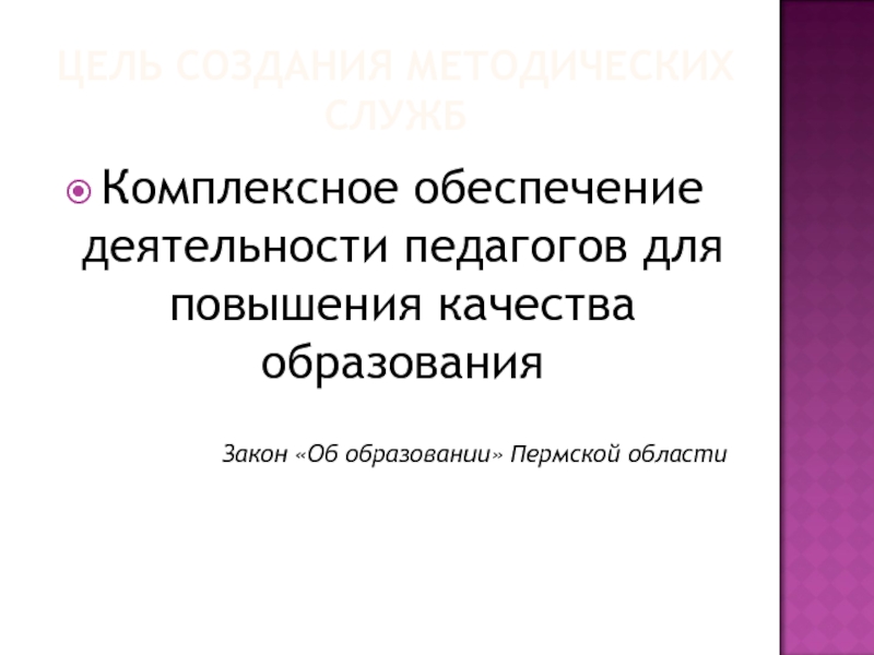 Слайд 17ЦЕЛЬ СОЗДАНИЯ МЕТОДИЧЕСКИХ СЛУЖБ