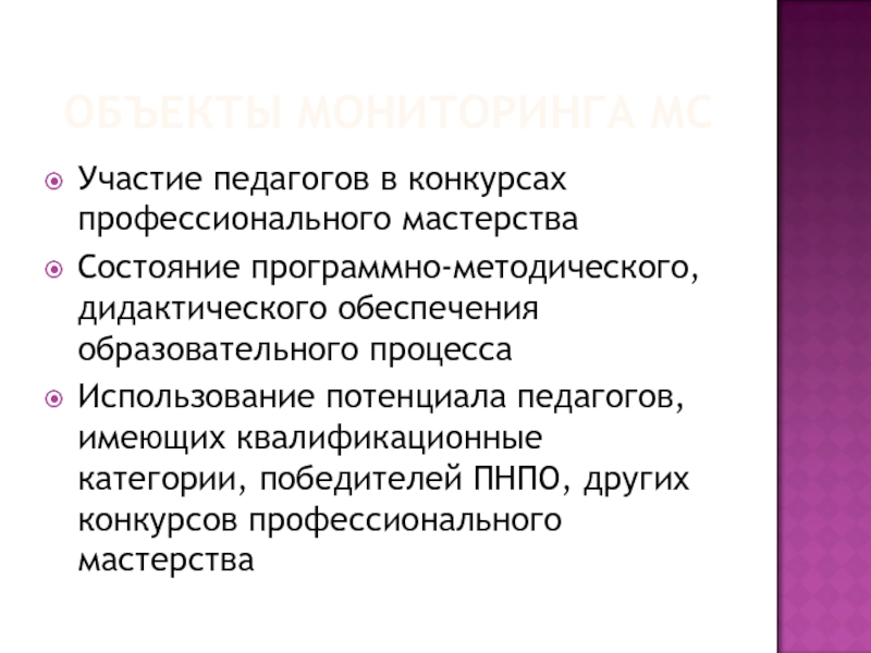 Слайд 21ОБЪЕКТЫ МОНИТОРИНГА МС