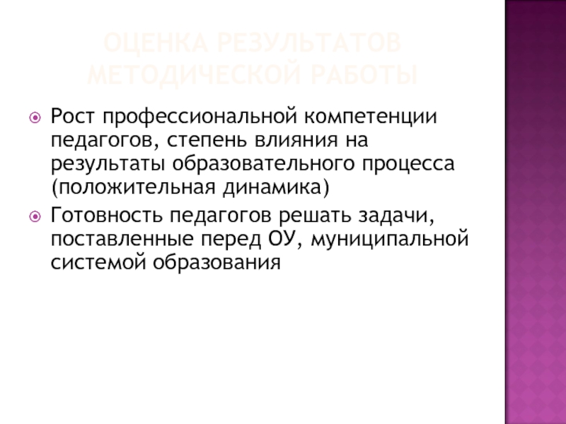 Слайд 23ОЦЕНКА РЕЗУЛЬТАТОВ МЕТОДИЧЕСКОЙ РАБОТЫ