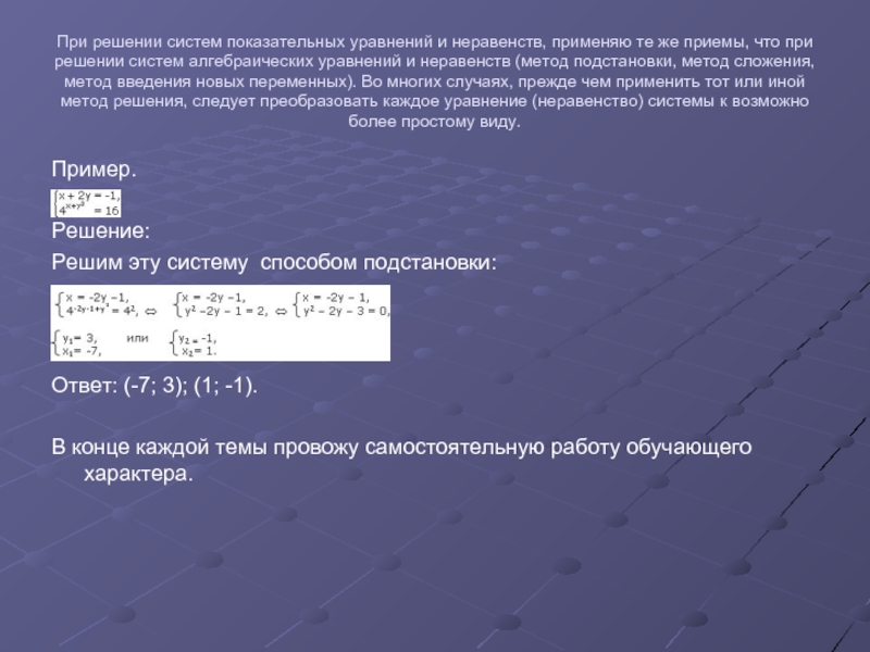 Слайд 15При решении систем показательных уравнений и неравенств, применяю те же приемы,