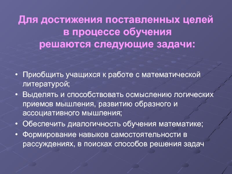 Выделять и способствовать осмыслению логических приемов мышления, развитию образного и ассоциативного мышления;