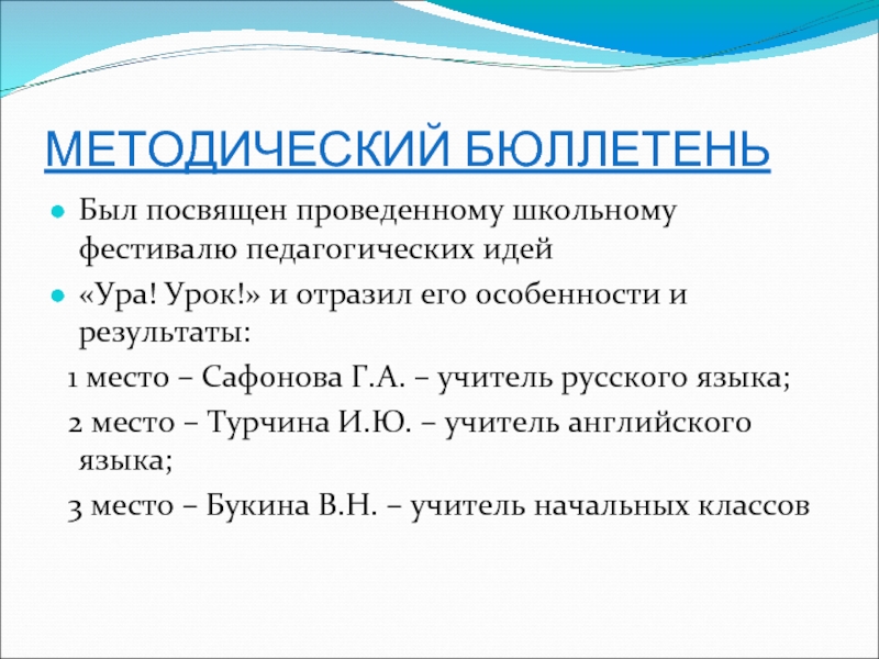 Слайд 9МЕТОДИЧЕСКИЙ БЮЛЛЕТЕНЬ