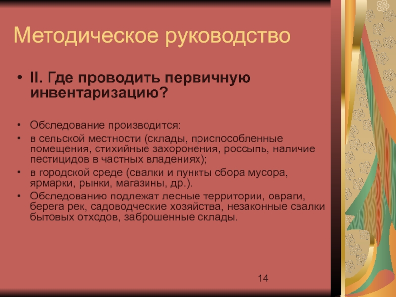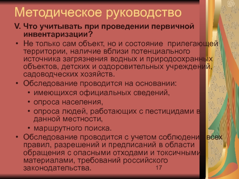 проведения первичной инвентаризации запасов устаревших пестицидов на рассматриваемой территории;
