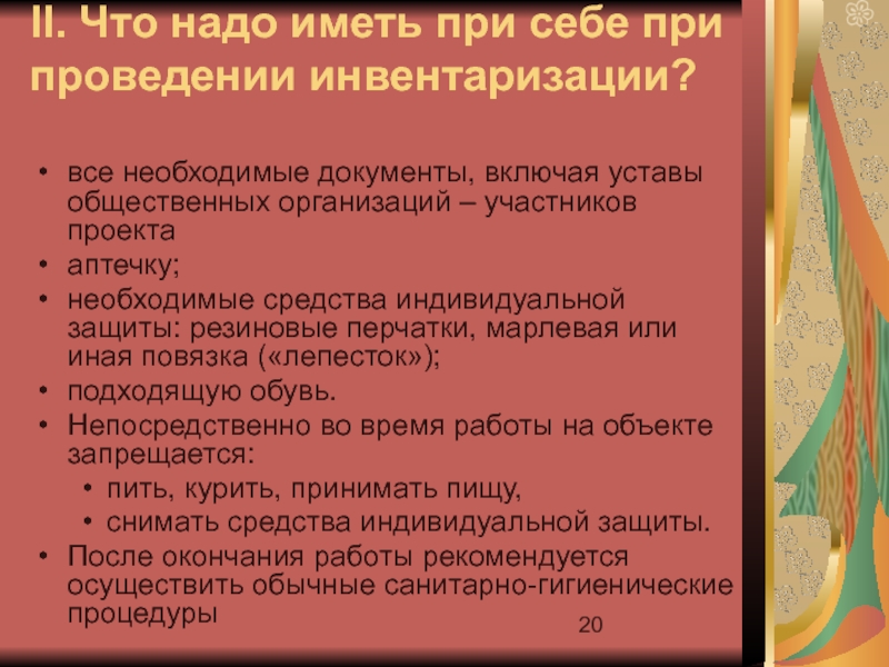 Слайд 20II. Что надо иметь при себе при проведении инвентаризации?