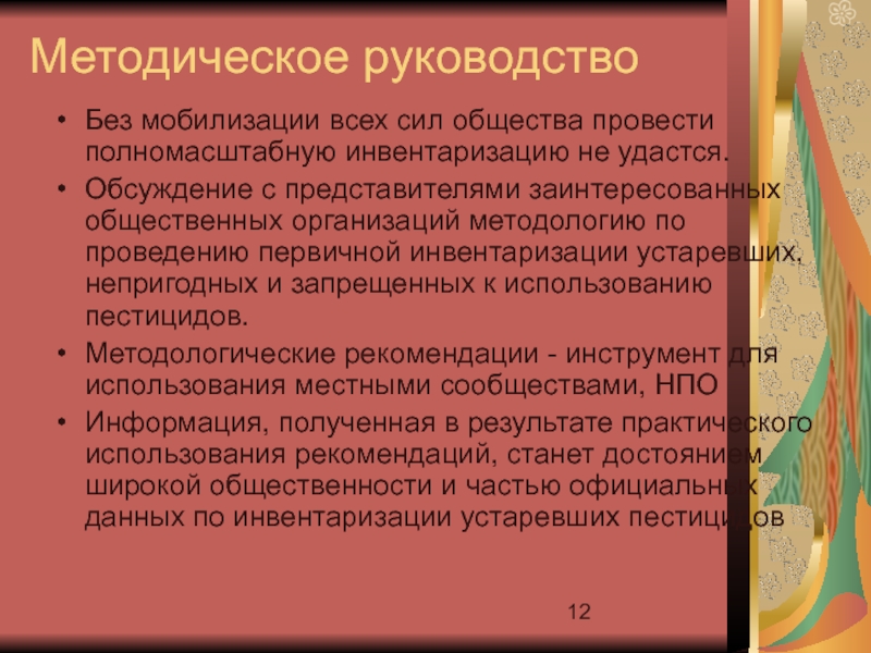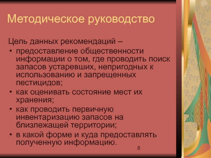 Информация, полученная в результате практического использования рекомендаций, станет достоянием широкой общественности и частью официальных данных по инвентаризации устаревших пестицидов