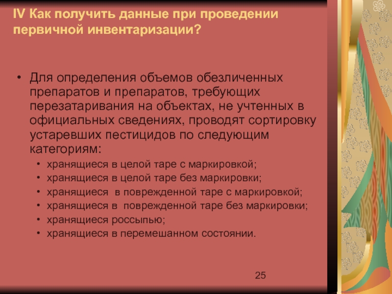 Слайд 25IV Как получить данные при проведении первичной инвентаризации?