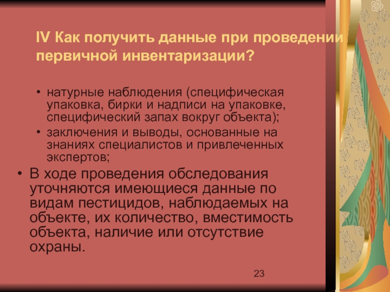 Слайд 23IV Как получить данные при проведении первичной инвентаризации?