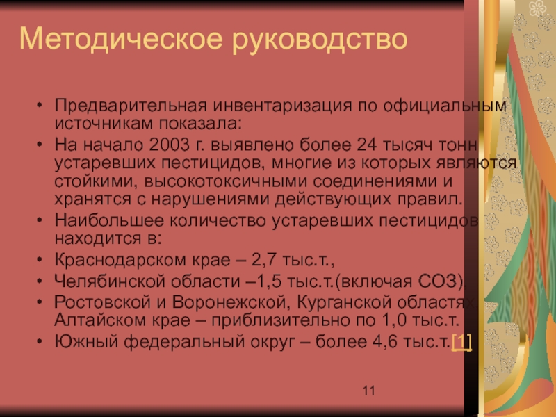 более 24 тысяч тонн устаревших пестицидов, многие из которых являются стойкими, высокотоксичными соединениями и хранятся с нарушениями действующих правил.