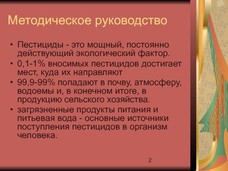 Пестициды - это мощный, постоянно действующий экологический фактор.