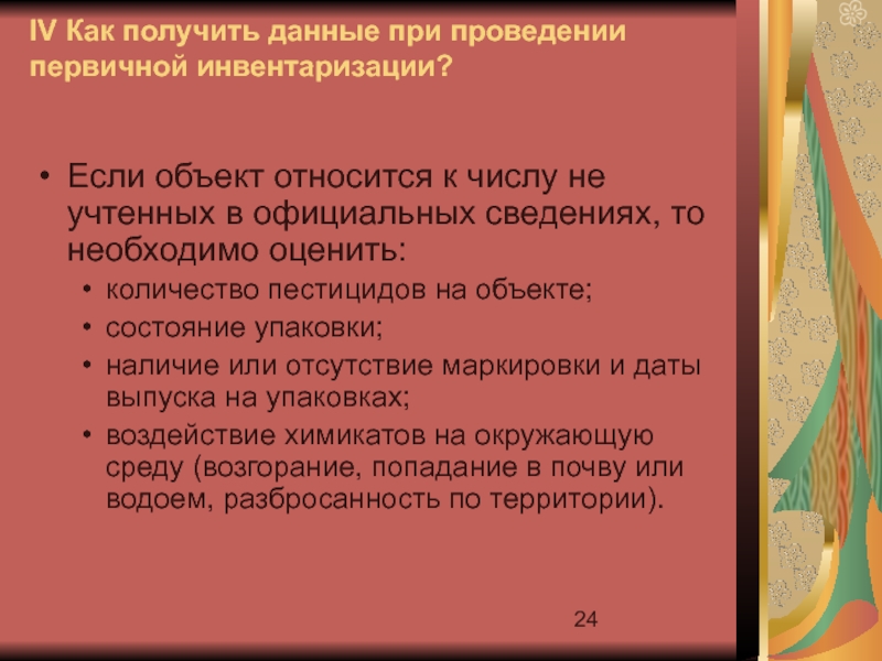 Слайд 24IV Как получить данные при проведении первичной инвентаризации?