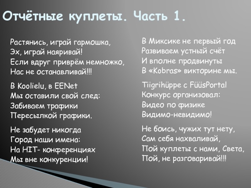 Отчётные куплеты. Часть 1.
