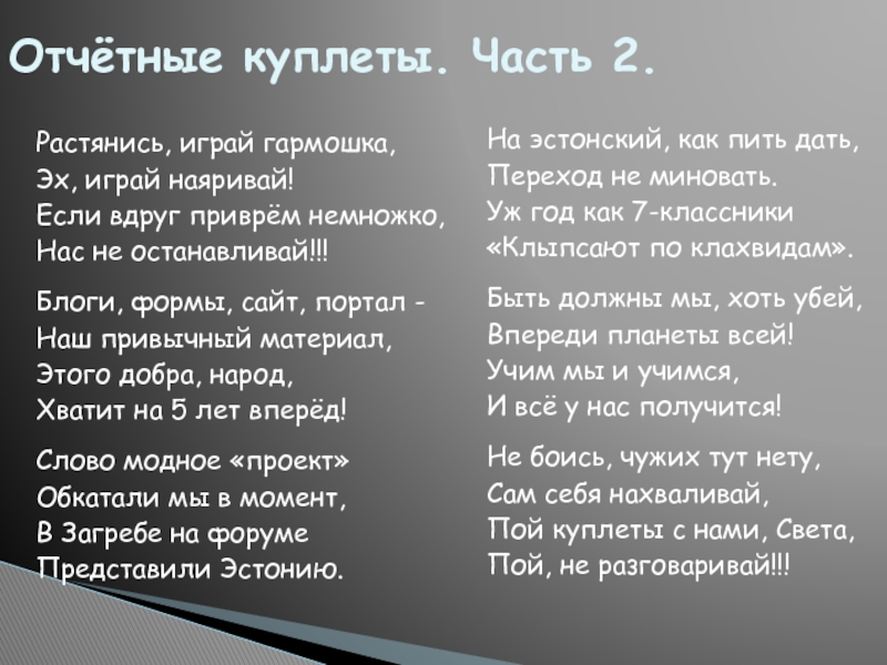 Отчётные куплеты. Часть 2.