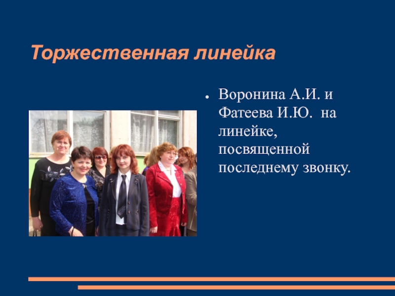 Воронина А.И. и Фатеева И.Ю. на линейке, посвященной последнему звонку.