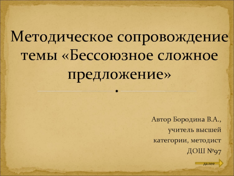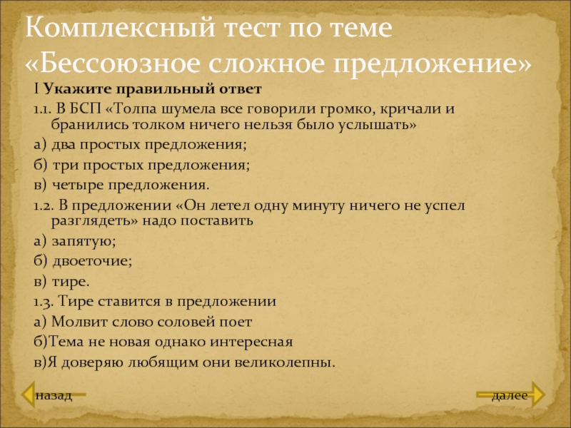 Комплексный тест по теме «Бессоюзное сложное предложение»