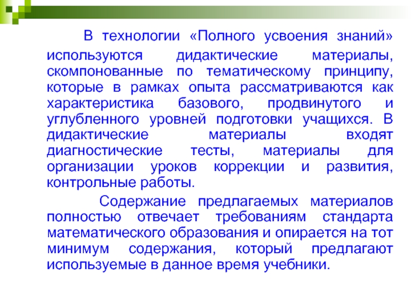 Слайд 12 В технологии «Полного усвоения знаний» используются дидактические материалы,