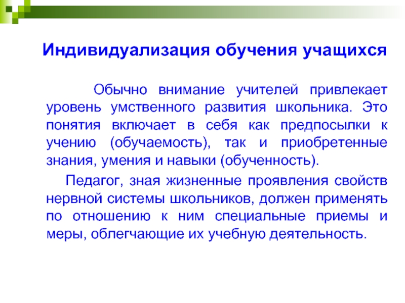Слайд 8 Индивидуализация обучения учащихся