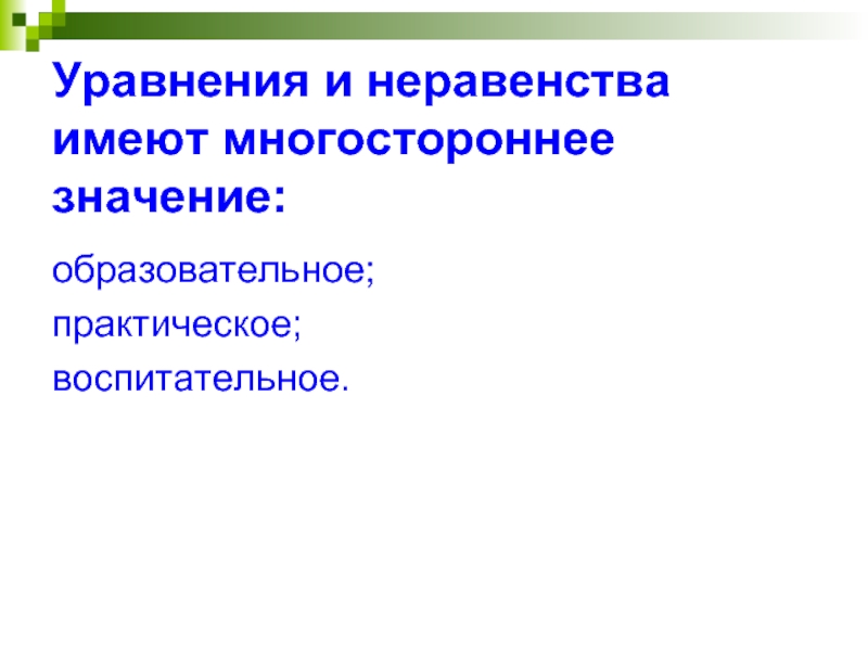 Уравнения и неравенства имеют многостороннее значение: