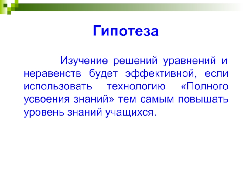 Разработать методику изучения решений уравнений и неравенств с помощью технологии «Полного усвоения знаний»