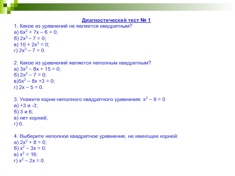 1. Какое из уравнений не является квадратным?