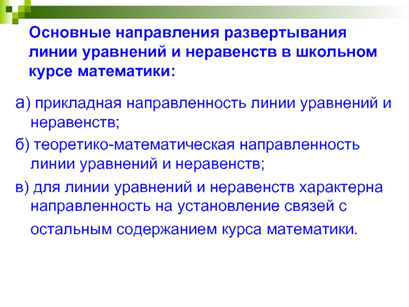 б) теоретико-математическая направленность линии уравнений и неравенств;