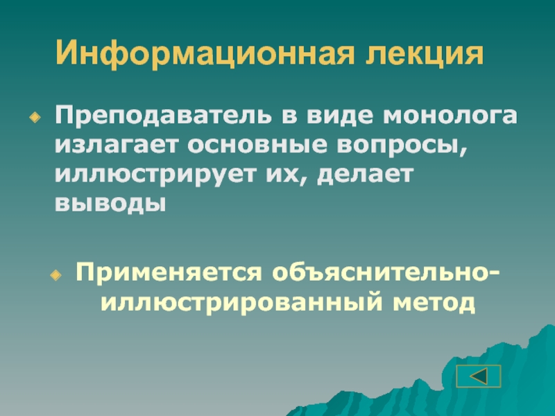 Это творческий процесс деятельности преподавателя, требует от него большого напряжения всех духовных сил и сосредоточенности.
