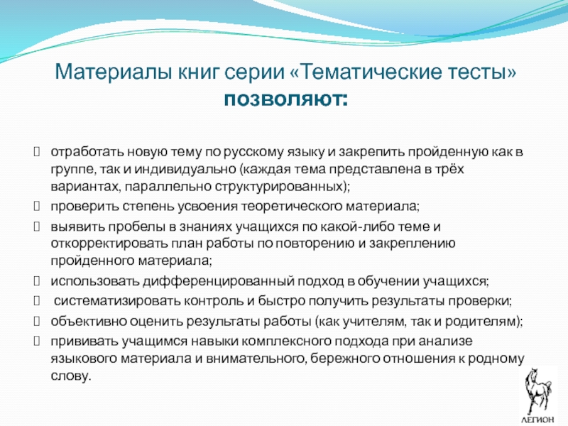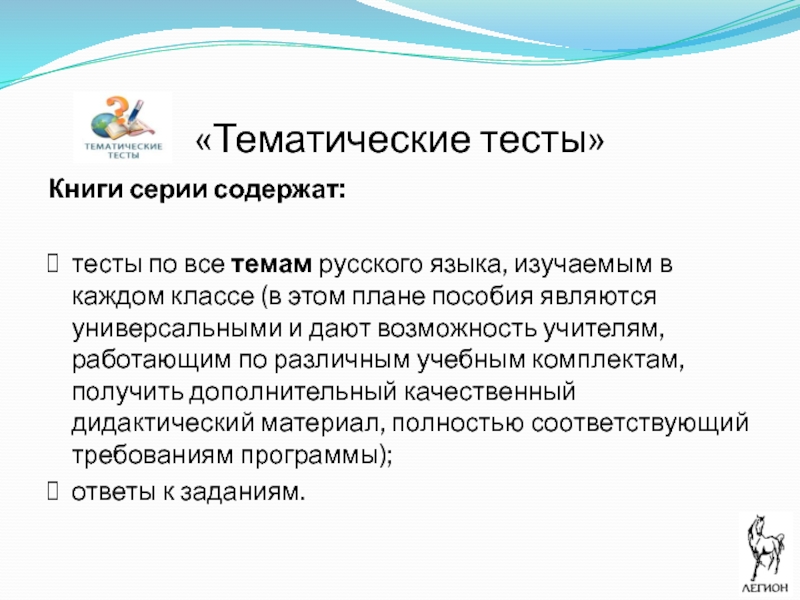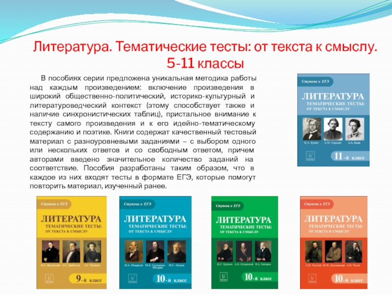 Тематические пособия. Главной целью их выпуска является стремление помочь школьникам поступенчато отработать все темы образовательных программ, нашедшие отражение в заданиях ЕГЭ и ГИА-9.
