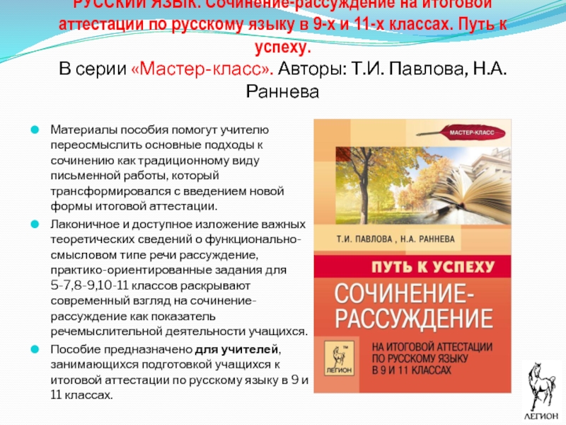 Материалы пособия помогут учителю переосмыслить основные подходы к сочинению как традиционному виду письменной работы, который трансформировался с введением новой формы итоговой аттестации.