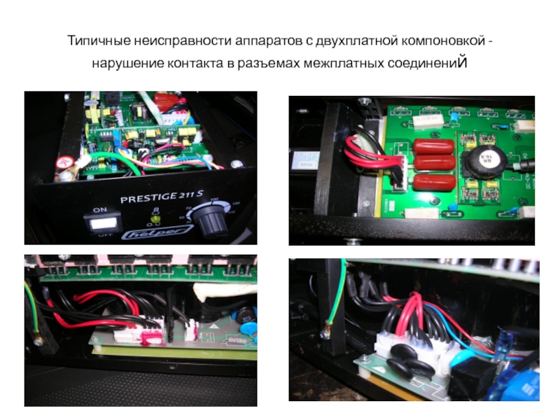 Слайд 23Типичные неисправности аппаратов с двухплатной компоновкой - нарушение контакта в разъемах