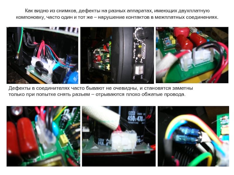 Слайд 24Как видно из снимков, дефекты на разных аппаратах, имеющих двухплатную компоновку,