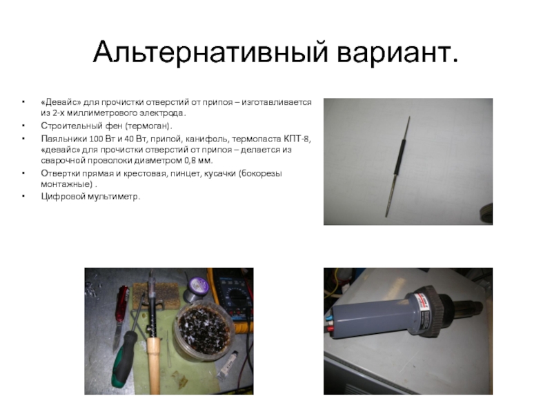 «Девайс» для прочистки отверстий от припоя – изготавливается из 2-х