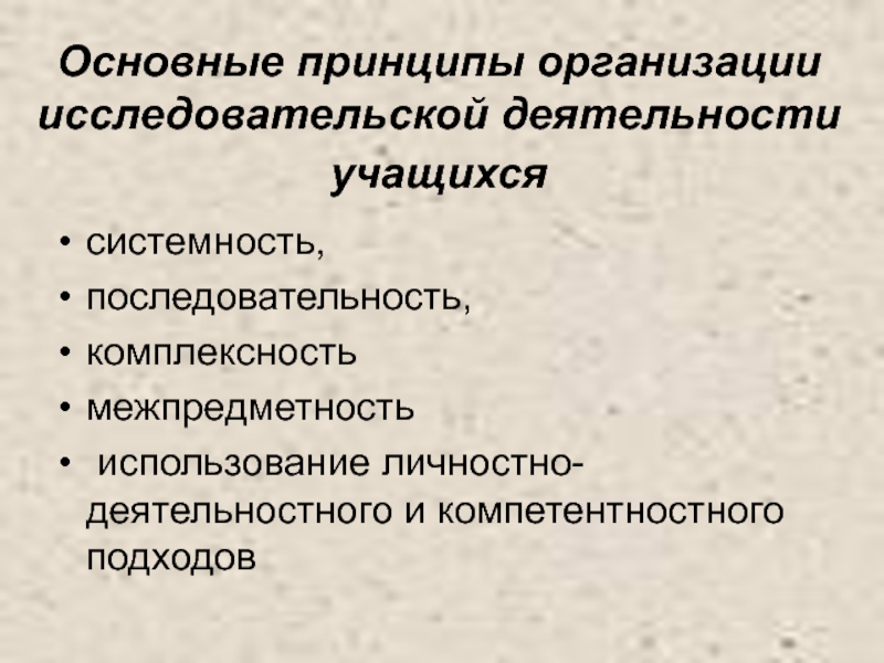 Слайд 9Основные принципы организации исследовательской деятельности учащихся