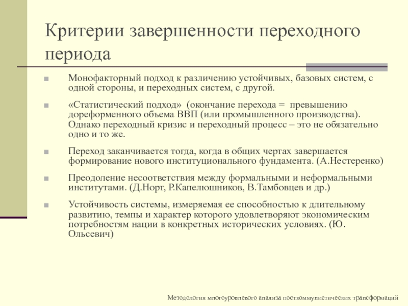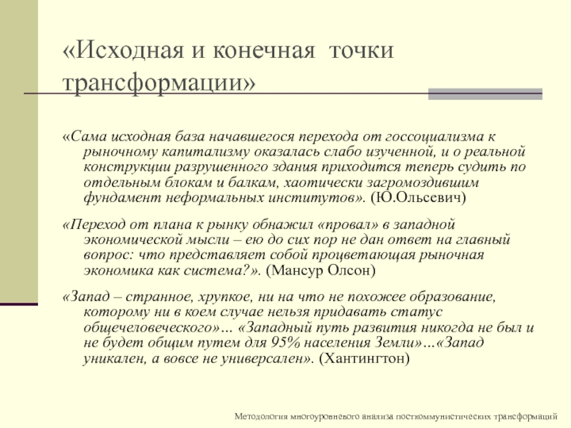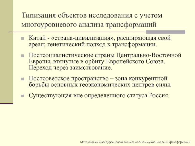 Основные методологические проблемы анализа посткоммунистических трансформаций