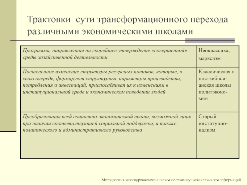 Национальные модели трансформации во всех основных аспектах – экономических, социально-политических, внешнеэкономических.