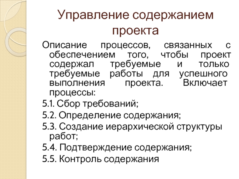 Слайд 7Управление содержанием проекта