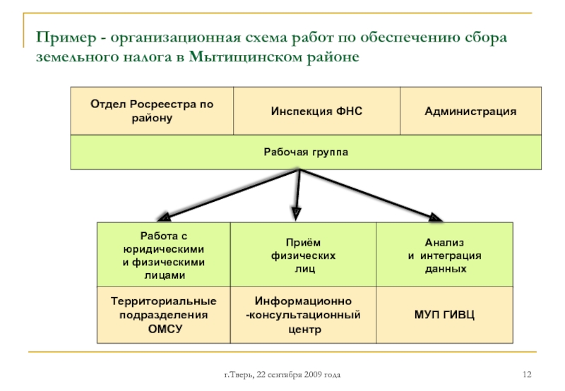 Пример - организационная схема работ по обеспечению сбора земельного налога в Мытищинском районе