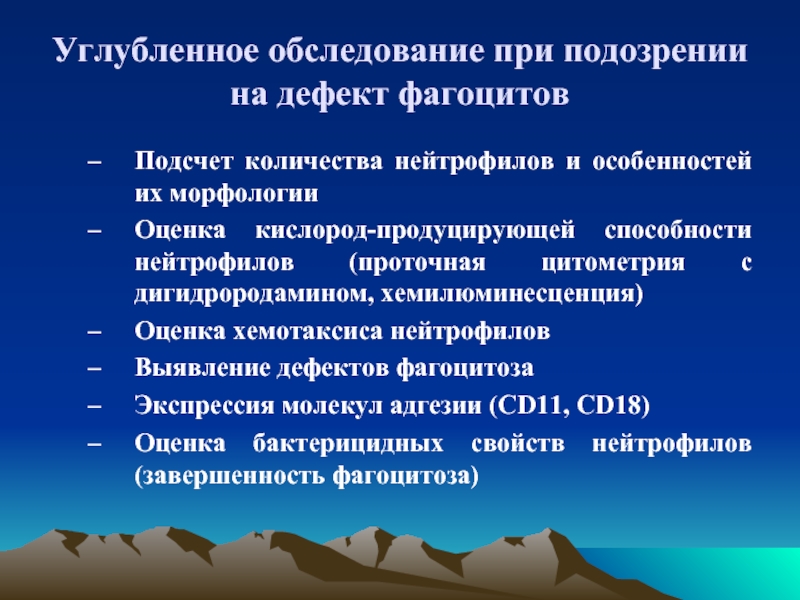 Слайд 28Углубленное обследование при подозрении на дефект фагоцитов
