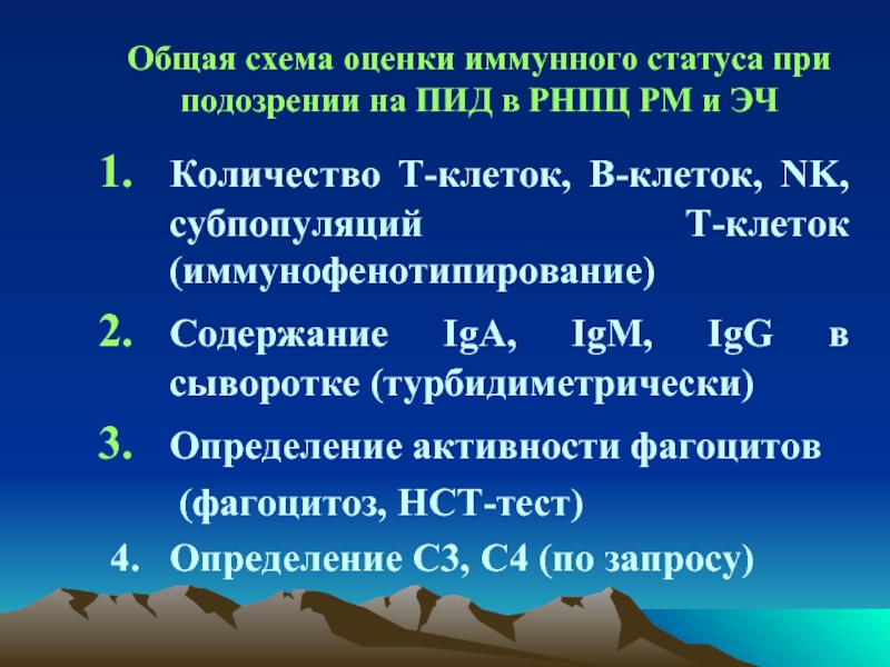 Слайд 34Общая схема оценки иммунного статуса при подозрении на ПИД в РНПЦ