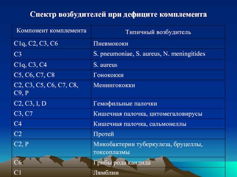 Слайд 31Спектр возбудителей при дефиците комплемента
