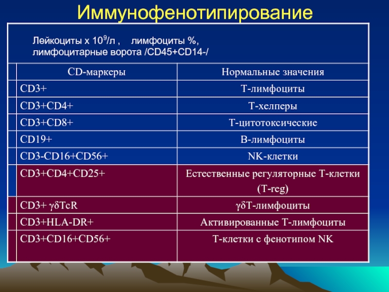 Слайд 38Нормальные значения субпопуляционного состава лимфоцитов