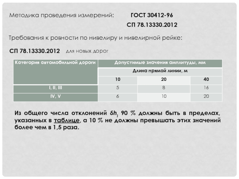 Из общего числа отклонений δhi 90 % должны быть в пределах, указанных в таблице, а 10 % не должны превышать этих значений более чем в 1,5 раза.